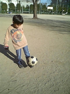 ボールを蹴飛ばしたり、地面を蹴ってみたり・・