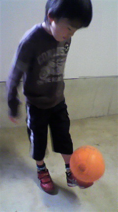 ①廊下でドリブル。